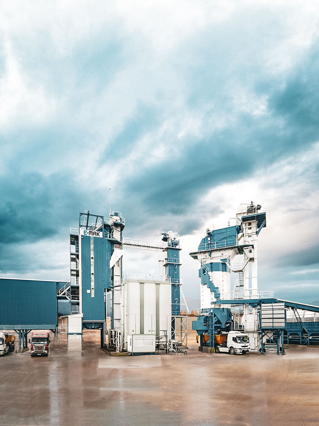 Closed aggregate preparation system (crushing, sieving, stockpiling, feeding) integrated to asphalt plants.